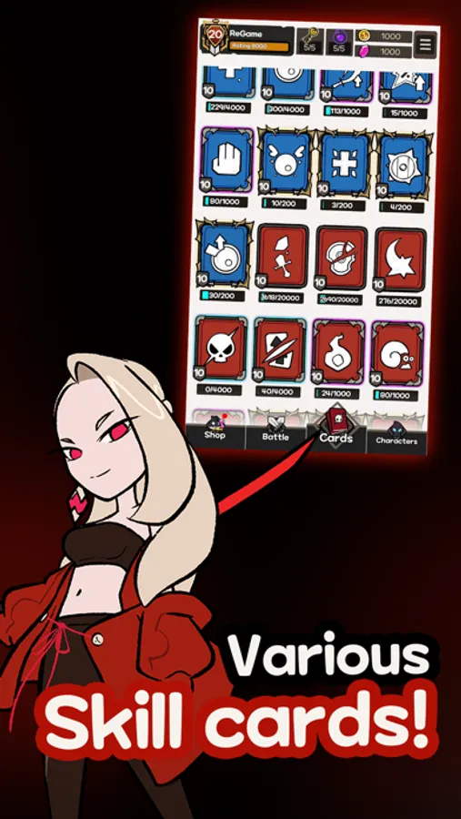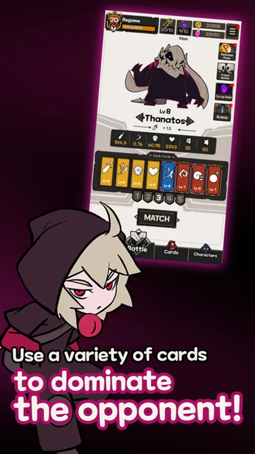 Use stat cards and prolong the battle to destroy opponents in the endgame with a huge stat difference!