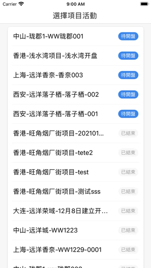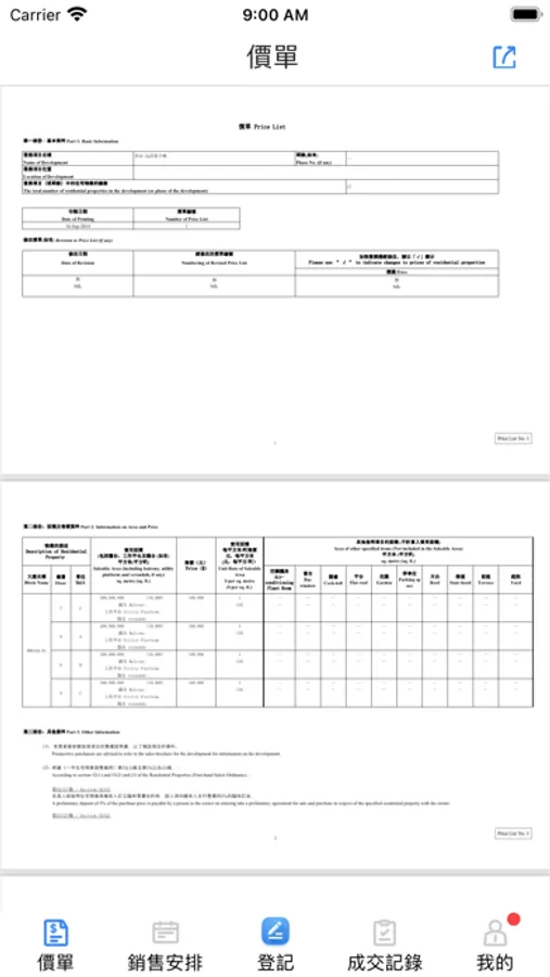 提供各項目開盤活動中塔樓組織的價單、銷售安排、成交記錄冊等資訊,供用戶查看。