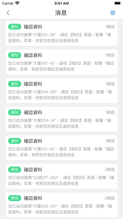 提供查閱登記資訊及成功選房的房號資訊功能。