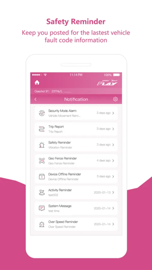 When the vehicle finds abnormal vibration or other abnormal indicator, it will send an APP push notification for the user. Also, the user can create own electronic Geo fence in a certain area and will receive vehicle enter/exit Geo fence notification. It will help user to get a better understanding of the dynamics of the vehicle.