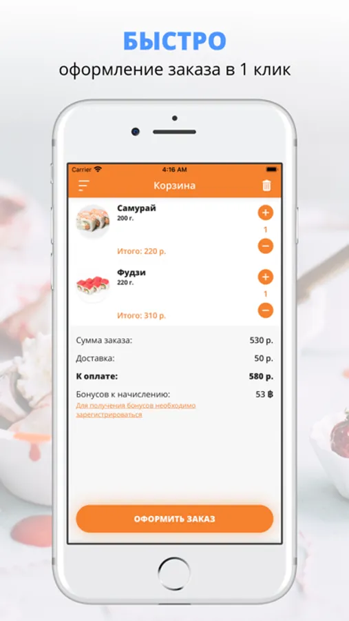 получать push-уведомления о статусе заказа,