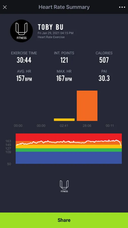 • View real time heart rate displayed in colored heart rate zone