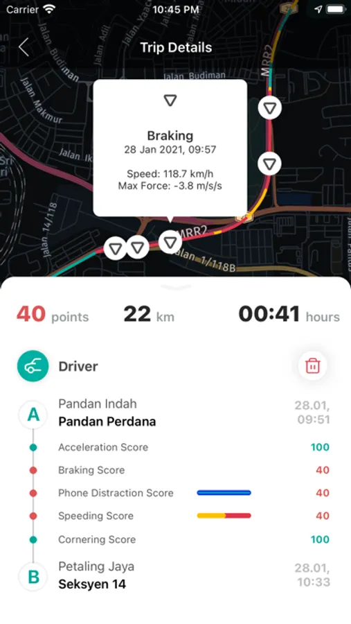 Review your trips in detail. Find out where & when the hard acceleration or braking happened and you can use that information to improve your driving or riding style.