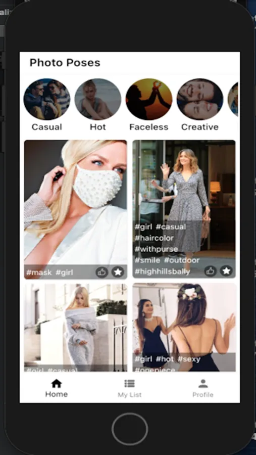 In the photo poses app, photos are also divided by categories like casual, faceless, hot, funny, travel and etc.