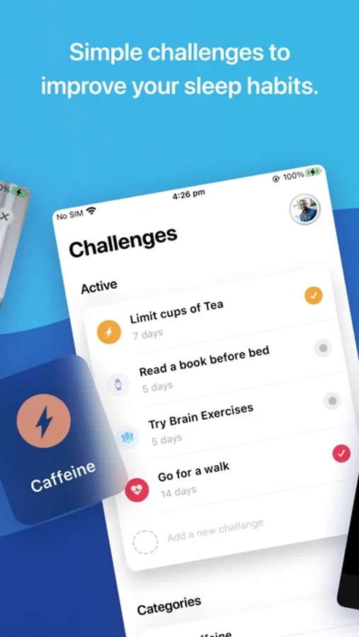 - Personalized Challenges from a range of topics to help you relax, build better routines, and manage your lifestyle for great sleep.