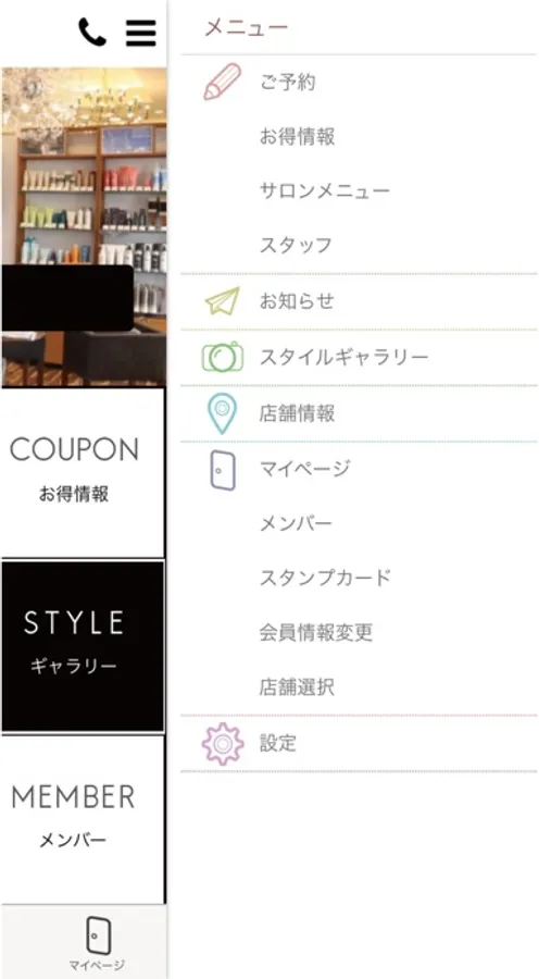 ▼マイページ機能で来店履歴や予約履歴がポイント保有数が確認できます。