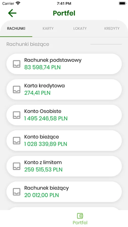 - prezentowanie rachunków, kart, lokat i kredytów klienta,
