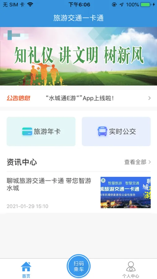 “水城通E游”是聊城公交集团在旅游交通电子一卡通平台基础上面向全体市民推出的服务公交扫码乘车、扫码入园、公共交通实时信息查询客户端APP。通过引入第三方互联网公司技术和资源,利用互联网、移动支付等技术,开发建设旅游交通一卡通(电子卡)业务平台体系和客户端APP等,实现公交扫码乘车和旅游景点扫码验票的复合应用,市民在旅游交通一卡通APP上通过身份证+个人手机进行实名认证,并购买公交乘车费和旅游年卡就可以在公交车收费机进行扫码乘车或在景区验码机扫码验票