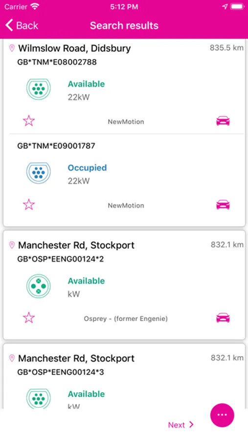 Search by city, zip code or charging station number. Use the search list for an overview of the charging stations that are currently available to you.