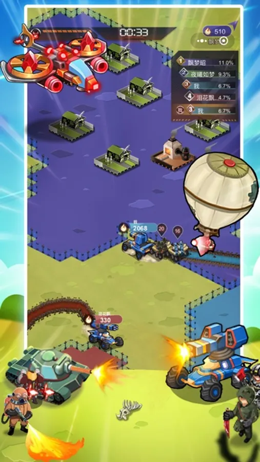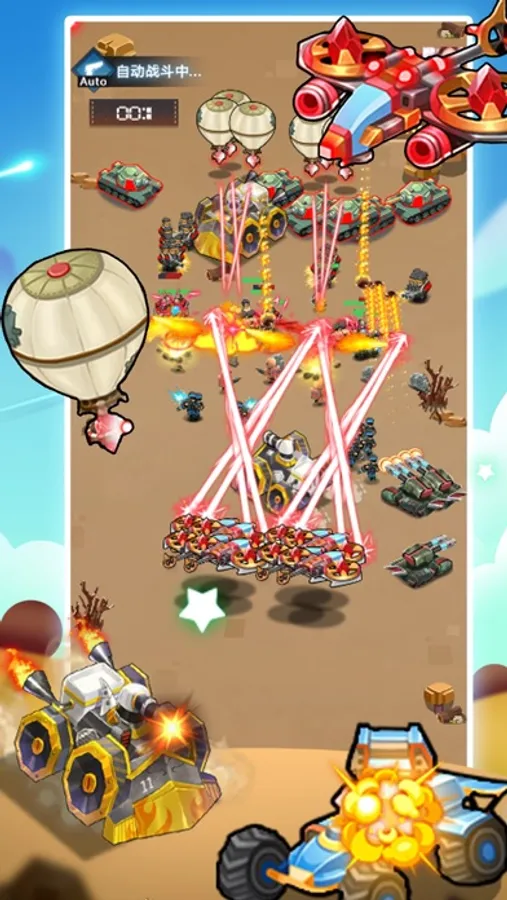 -五种兵营,五种定位,近战兵、喷火兵、机枪兵、坦克与飞机可不断升级与进化,从而提升战力。25种有趣酷炫的兵种单位形态,带给你新鲜逼真的战斗体验