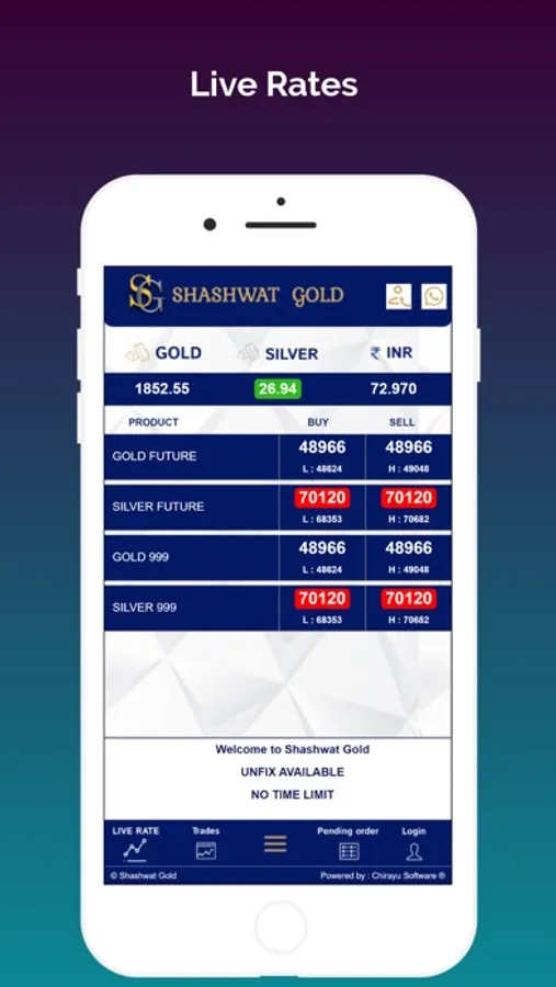 1. The App shows the fast updated LIVE RATES of Gold and Silver.