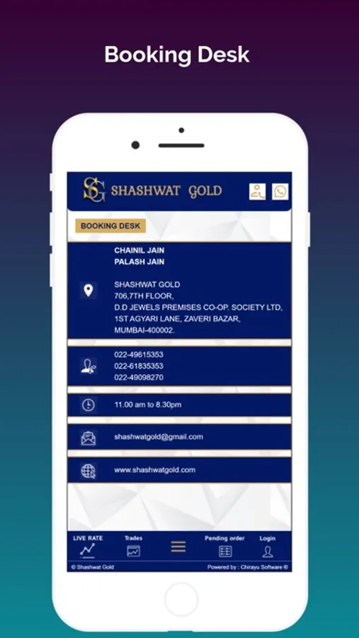 4. The BOOKING DESK section of the app displays all the contact details such as address, contact numbers, website, email-id of the company.