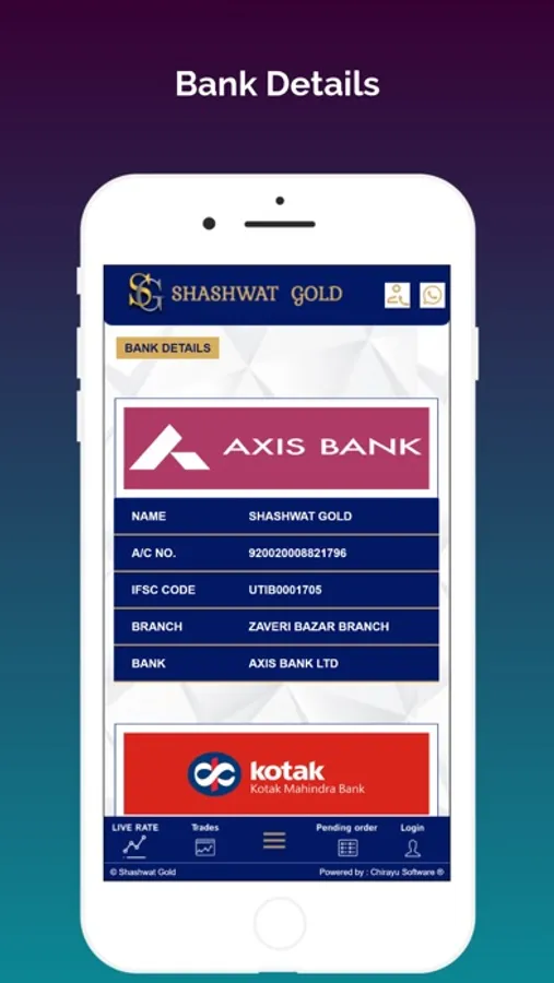 6. It also has the feature to show the LIVE CHART interpretetion of live rates of gold.