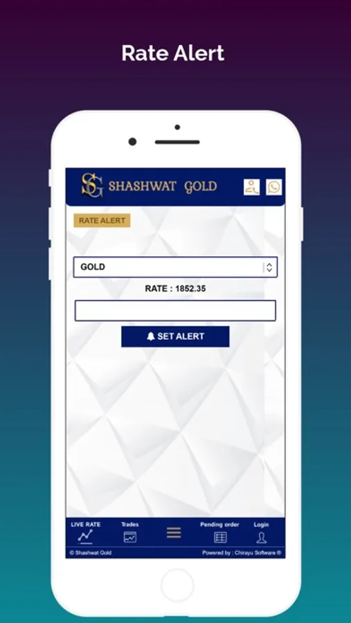 5. Our App also has the facility to set RATE ALERT at certain price level and notifies the client when the price reaches the desired level.