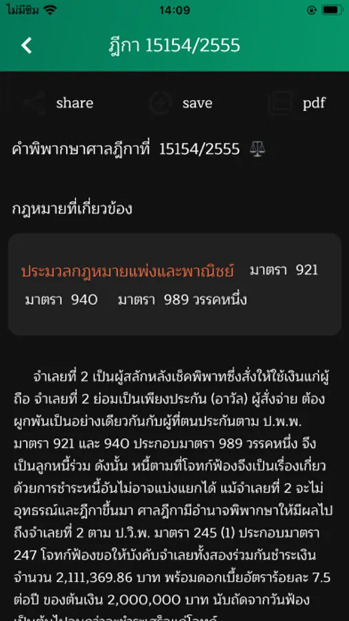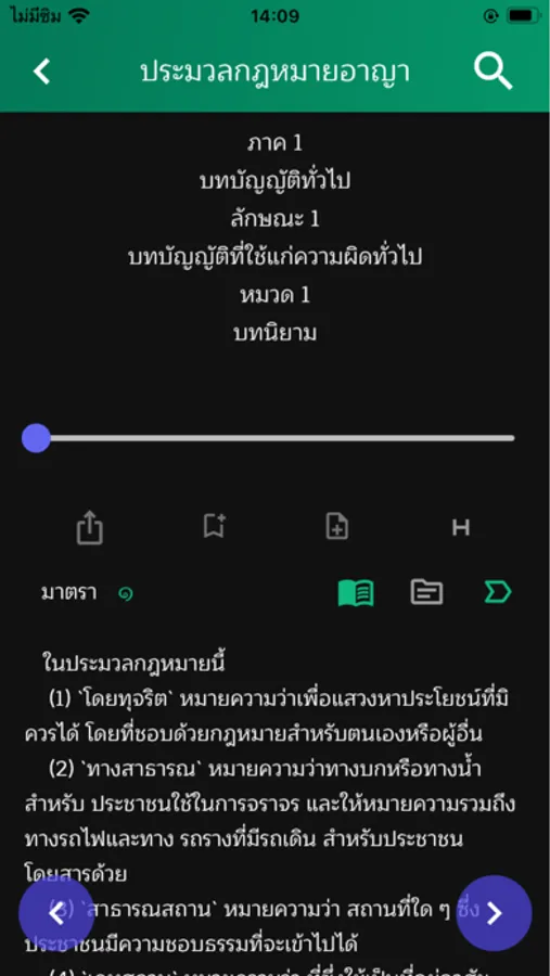 ฟังก์ชันการบันทึกและบุ๊กมาร์กประมวลกฎหมายรายมาตรา