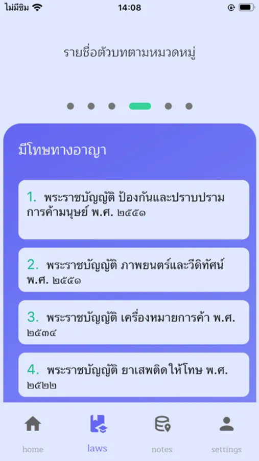 ประกอบด้วย พระราชบัญญัติและพระราชกำหนดแบ่งตามหมวดหมู่ ทั้งหมด 46 ฉบับ แบบออฟไลน์(อัพเดทล่าสุด วันที่ 29 มกราคม 2564)