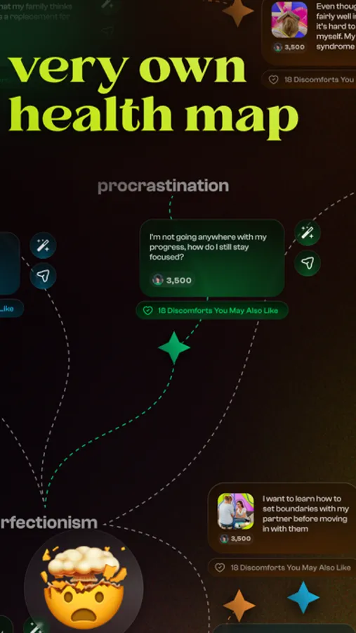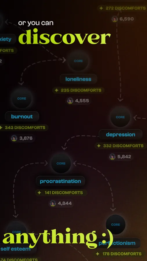 one part is about understanding your issues. we break your complex issues into manageable bits that’s easier to work with — we call “discomforts”. and the other part is providing just the right help you need for your discomforts — we call “mini-therapy”
