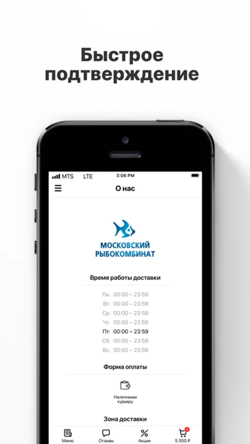 — Быстрый заказ с мгновенным подтверждением через приложение.