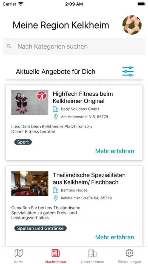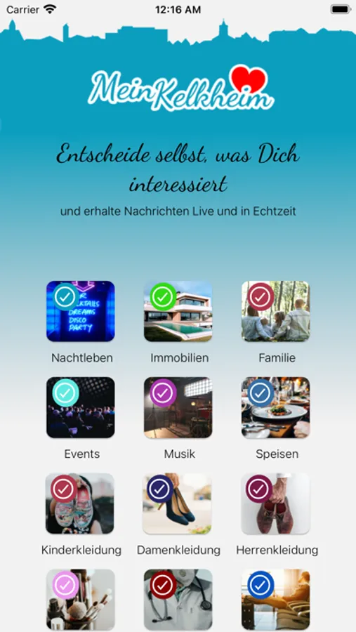 1.) Wähle aus einer Vielzahl von Kategorien aus (Events, Familie, Sport, Restaurants, Kleidung, Immobilien,....) und erhalte aktuelle Push-Nachrichten über neue Angebote aus Deiner Region.