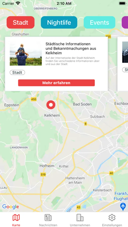 Die Mein Kelkheim App schafft eine persönliche Bindung zwischen den Menschen der Region und den einzelnen Unternehmen, Einrichtungen und Veranstaltungsorten.