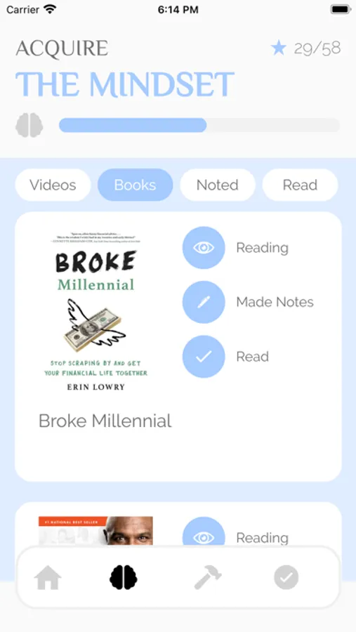 This app shows you videos and books of success experts and it challenges you to apply their knowledge on a daily basis.
