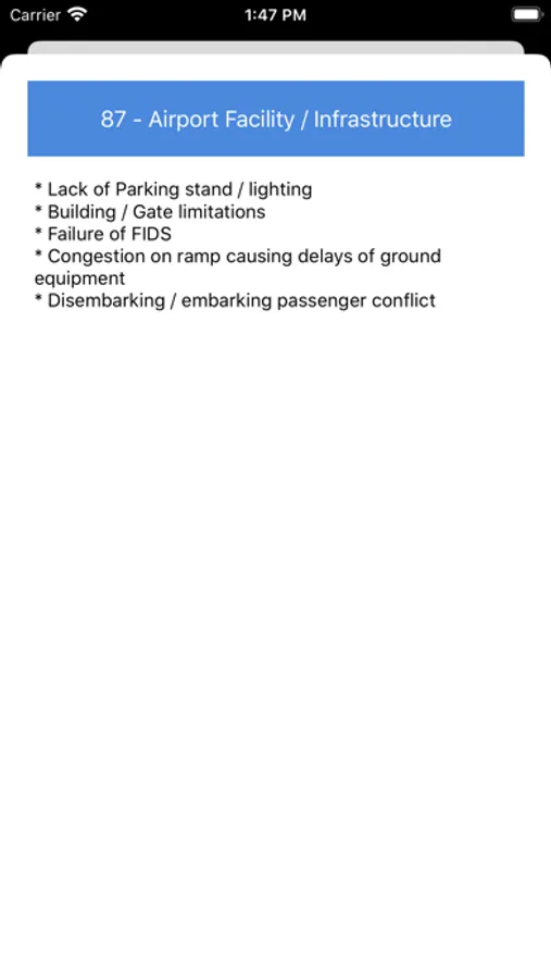 Delay Codes is a quick reference tool for airline pilots, flight attendants and ground handlers alike who need to quickly reference standard IATA Delay codes. You can quickly search and reference the delay codes library, or read the expanded description to help you choose the appropriate delay code for your flight.
