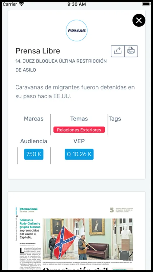 Acceso a contenidos noticiosos y de opinión de las marcas, categorías y temas de cobertura designados para los usuarios de Inteligencia de Medios desde la plataforma de monitoreo y analítica de OAC.