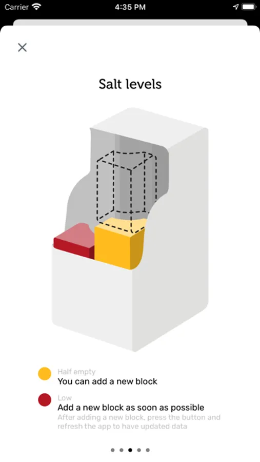 • The app displays a simple dashboard allowing real time monitoring of salt levels