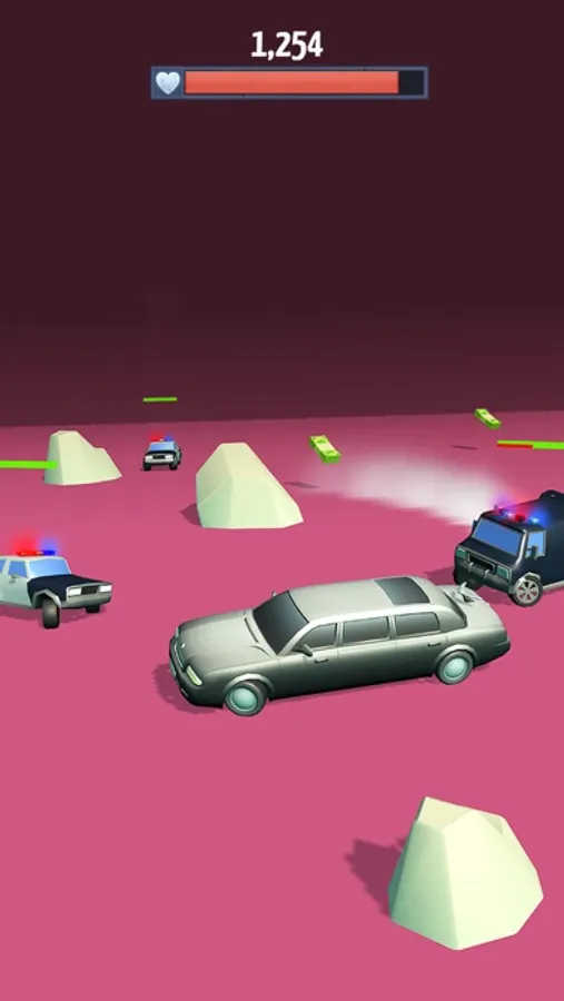 Get in to hyper police chase, loot and run. The faster you are the more you can earn. If you want to loot more upgrade cars for the best heavy vehicles. Collect cash and health in between the chase to earn and survive more. Upgrade to best vehicles like, bulldozer, pickup cars, monster car, limousine, trucks, firetruck, bus.