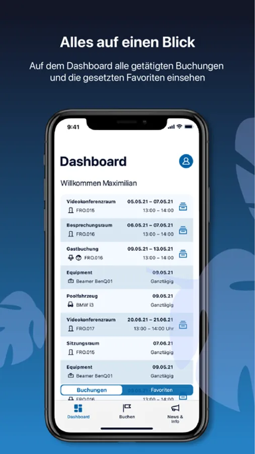 - Alles auf einen Blick: Auf dem Dashboard alle getätigten Buchungen und die gesetzten Favoriten einsehen