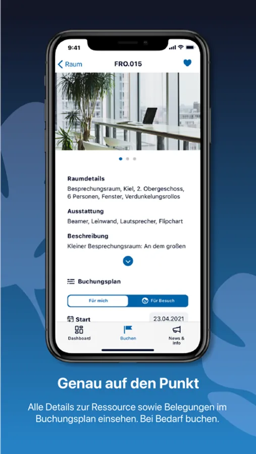- Genau auf den Punkt: Alle Details zu einer Ressource sowie Belegungen im Buchungsplan einsehen und bei Bedarf direkt buchen