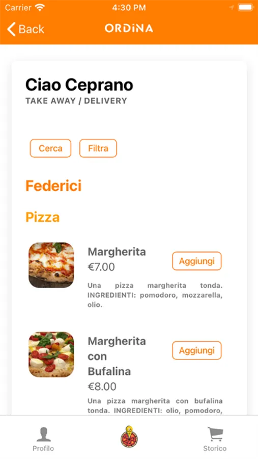Ciao City è un servizio di ordinazione online, scaricabile su tutti gli smartphone, pensato per migliorare l’esperienza del Take-away sia per i gestori di un’attività ricettiva sia per il pubblico. Scarica l’applicazione Ciao Ceprano sul tuo dispositivo, consulta e scegli i prodotti che preferisci, piazza l’ordine e vai a ritirare!