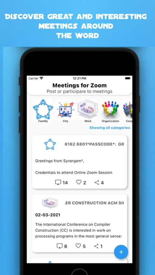 Share your public meetings and webinars, discover new webinars, share meetings and webinars with your friends, like meetings you like the most…