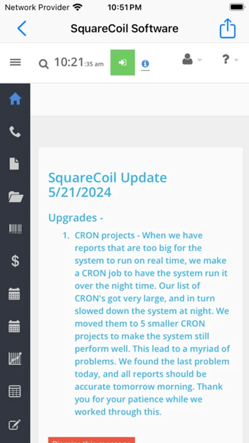 Keeping you within a finger’s touch of your company, this app will log you into Square Coil Software. Bringing you onto the dashboard to instantly access any part of the system with your credentials. Must have Square Coil Software system setup with your company prior to the app working.