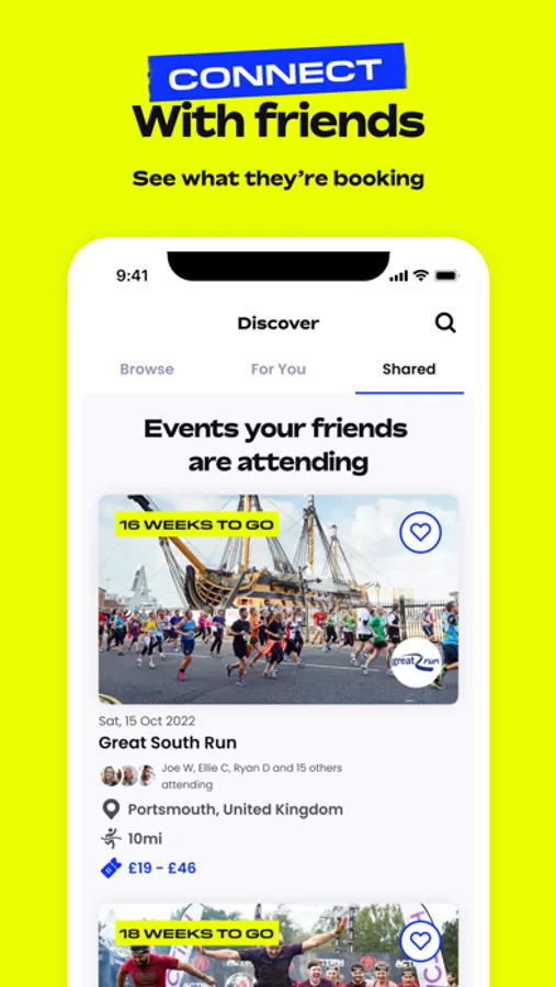 See and book the events your friends are booking, challenge each other with training leaderboards, and get instant race results for some events.