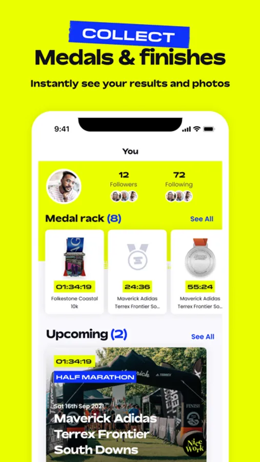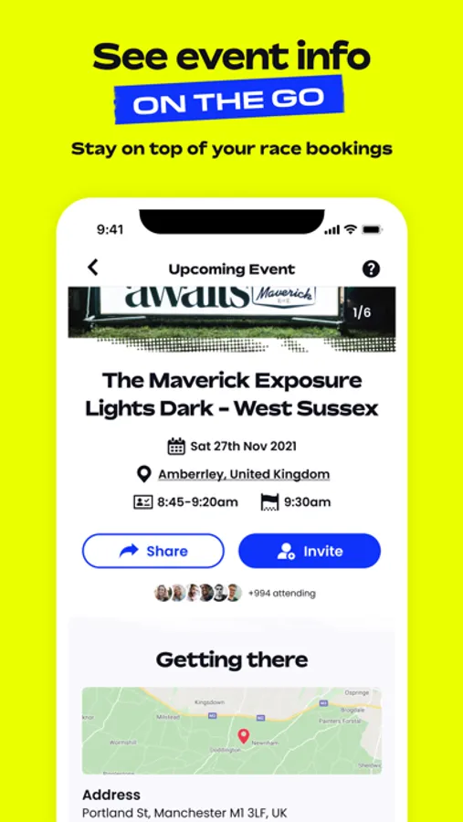 Access every UK race event in your pocket, track your bookings, race results and photos, and connect with friends racing with you.