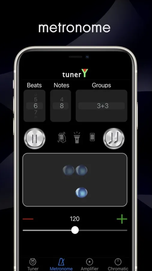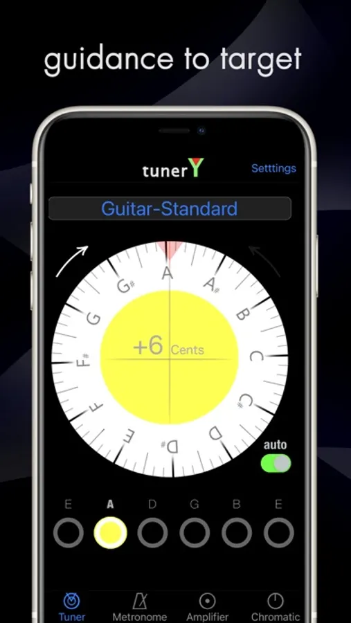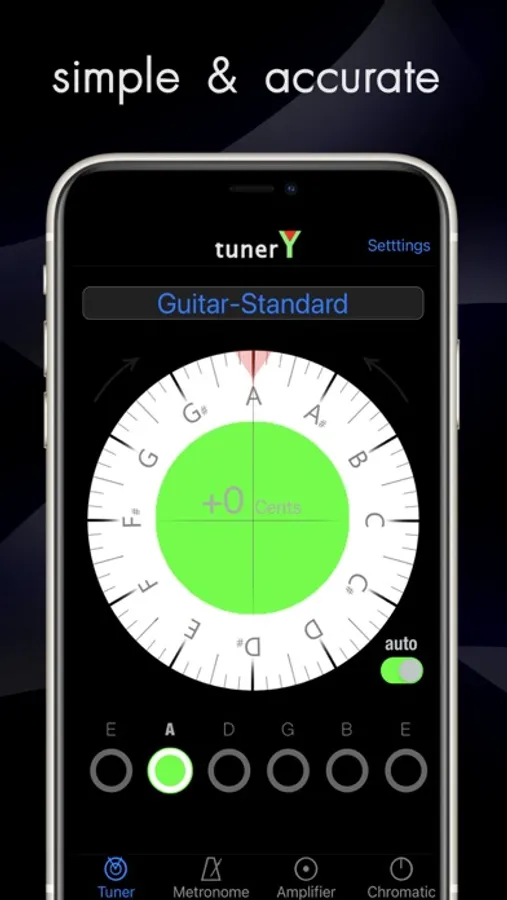 tunerY is a complete tuner app with metronome and personal amplifier which can be used with your headphones.