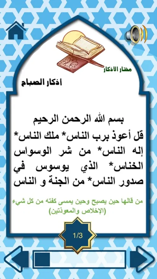 أذكار الصباح والمساء بثلاث طرق شامل ومختار ومختصر