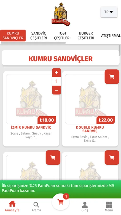 * Siparişlerinizden puan kazanabilir ve puanlarınızla siparişlerinizde fırsatları yakalayabilirsiniz.