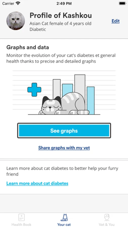 - Get precise data and graphs on the evolution of your cat's diabetes