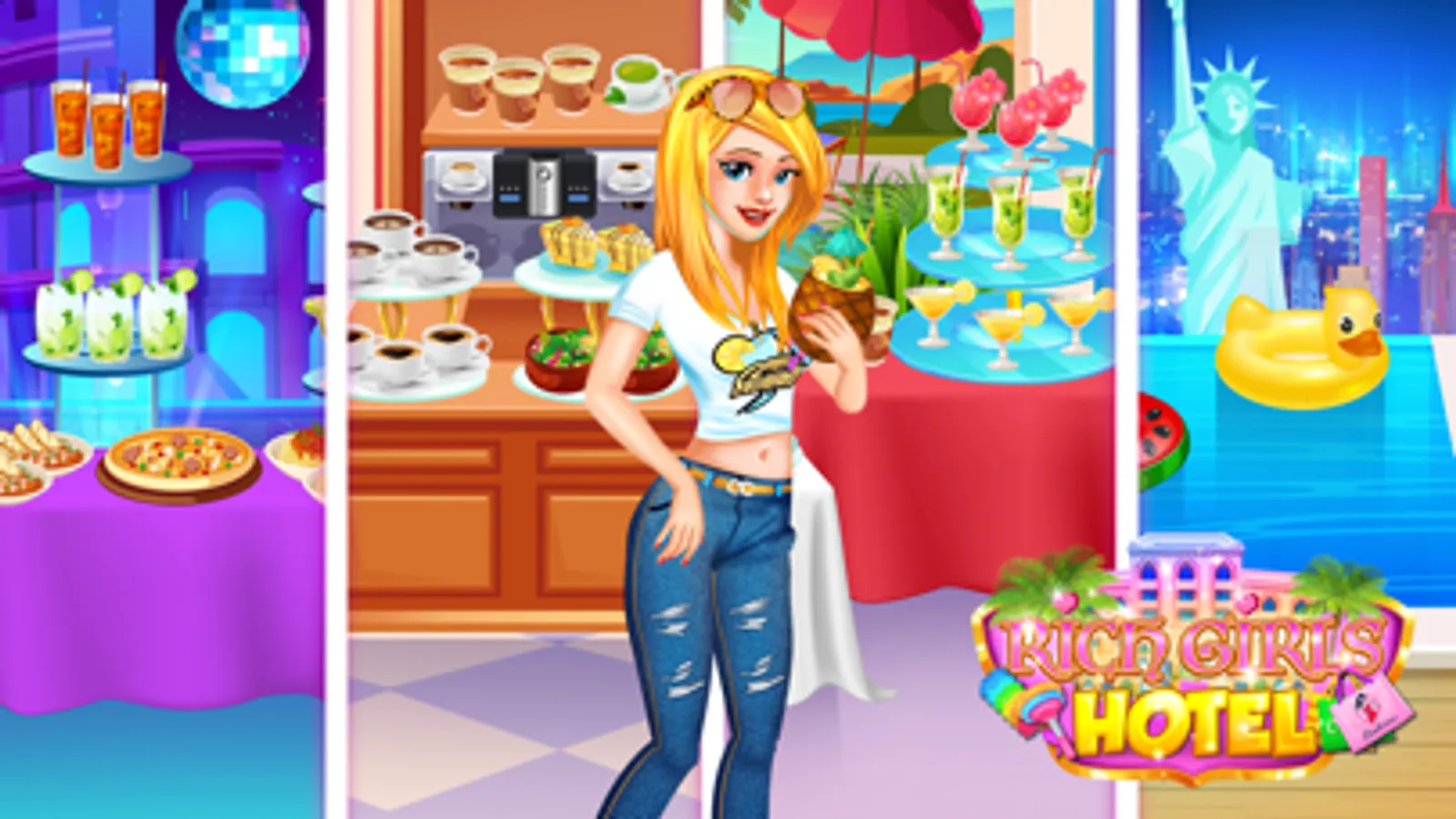Do you love shopping with your friends? Have you always dreamed of staying at luxurious five star hotels, and jet setting around the world? Your dreams can come true in Rich Girls Hotel!
