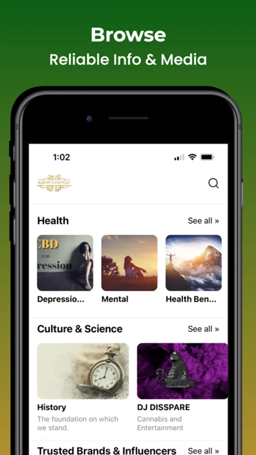 Kush Lounge is a social platform that combines the power of gamification, a guided journey, a like-minded community, and all things Cannabis to provide a place to discuss, educate, train and enhance the knowledge on the effects and benefits of Cannabis.