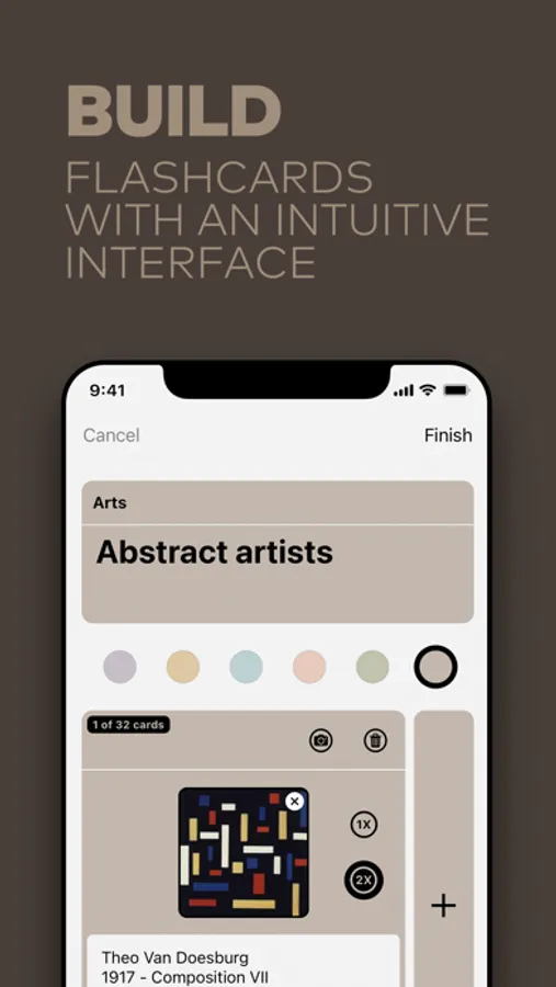 Create your own flashcards. Add images. Choose your favourite card design. Quizo makes you smarter.