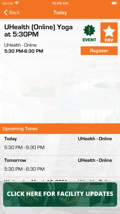 Welcome to the official app for the UHealth Fitness & Wellness Center. This app will allow you to stay connected & keep you up to date on the latest virtual & in-person programs & services offered. Information on group exercise classes & wellness programs is available at your fingertips. You can receive notifications of class cancellations, facility updates & upcoming special events. Find your fit by choosing your favorites & get reminders sent to your phone.
