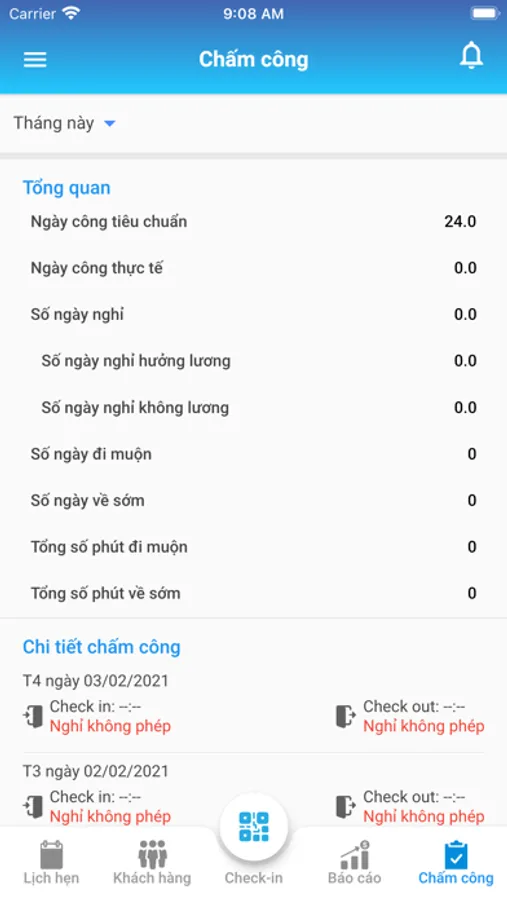 - Theo dõi lịch sử chấm công, số ngày công làm việc trong tháng