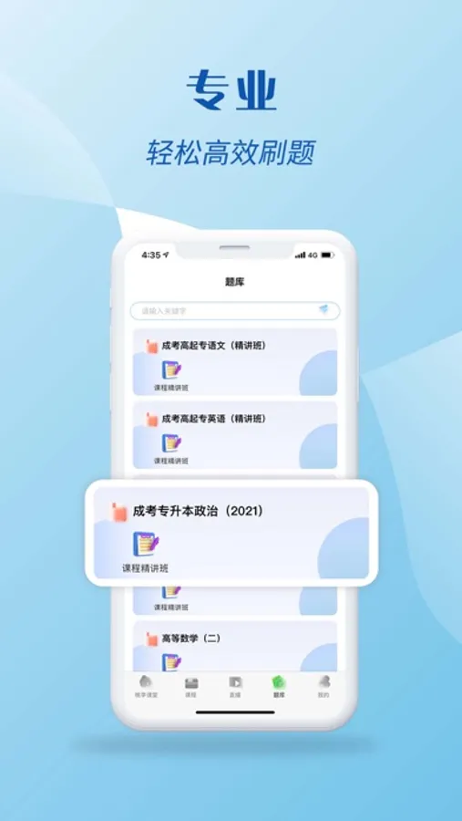 自由添加科目、历年真题、模拟考试、一件收藏,随时随地打开手机轻松刷题