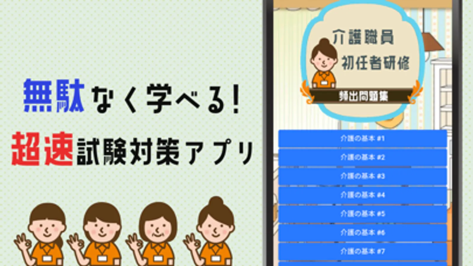 介護職員初任者研修試験2023年試験対策アプリです。