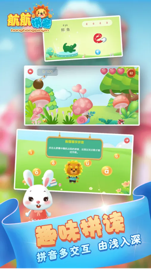 拼音学习-幼升小学拼音拼读和拼音发音点读是一款精心打造的幼儿拼音学习的产品!拼音是学习汉字发音的基础,融合了拼音发音、拼音笔顺、词组发音、以及丰富的互动学习课程,让宝宝学习不再枯燥,让宝宝更快的掌握标准的拼音发音。航航拼音软件包含63个章节,400多个课程,300多个拼音组合,500多个汉字,是拼音学习的好帮手。