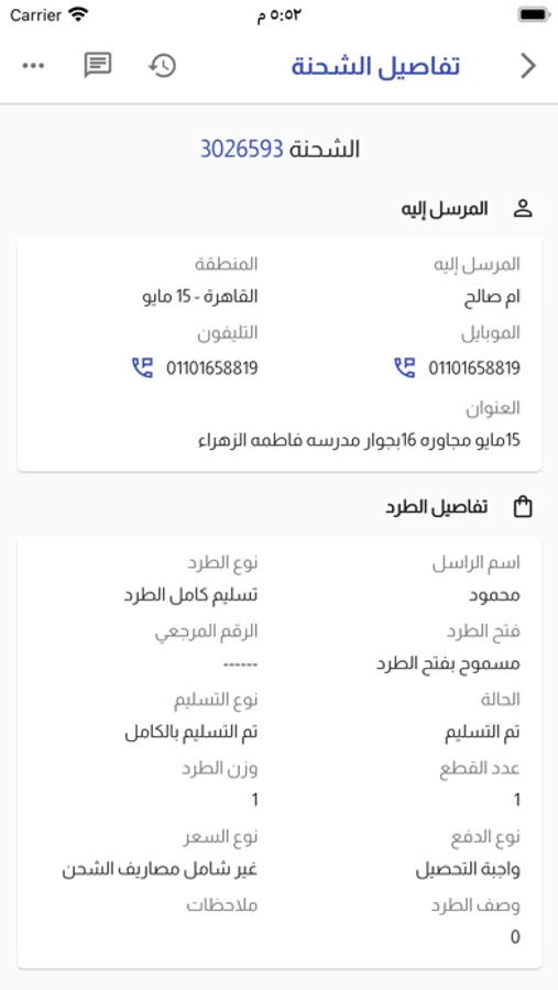 يسمح التطبيق لجميع العملاء في جميع أنحاء الجمهورية بإدارة تسليم واستلام الشحنات باستخدام الهاتف المحمول
