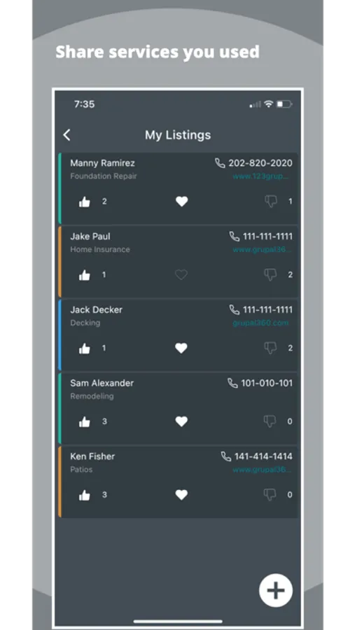 One source to find the services reviewed by acquaintances. Create groups with families and friends. Share the service you used or like through groups. Curate groups by location or interests.